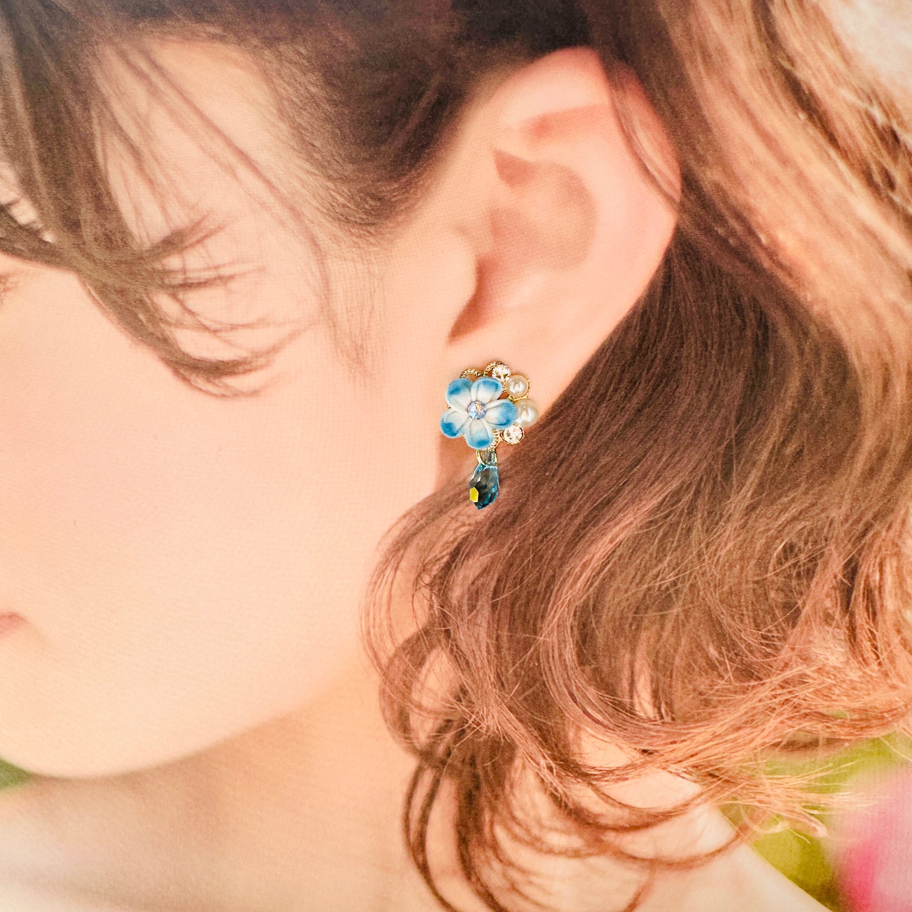 ネモフィラをモチーフにしたピアスです。可憐なネモフィラが揺れ動き、優しい印象を与えます。春の心地よさを感じさせるデザインに仕上げました。