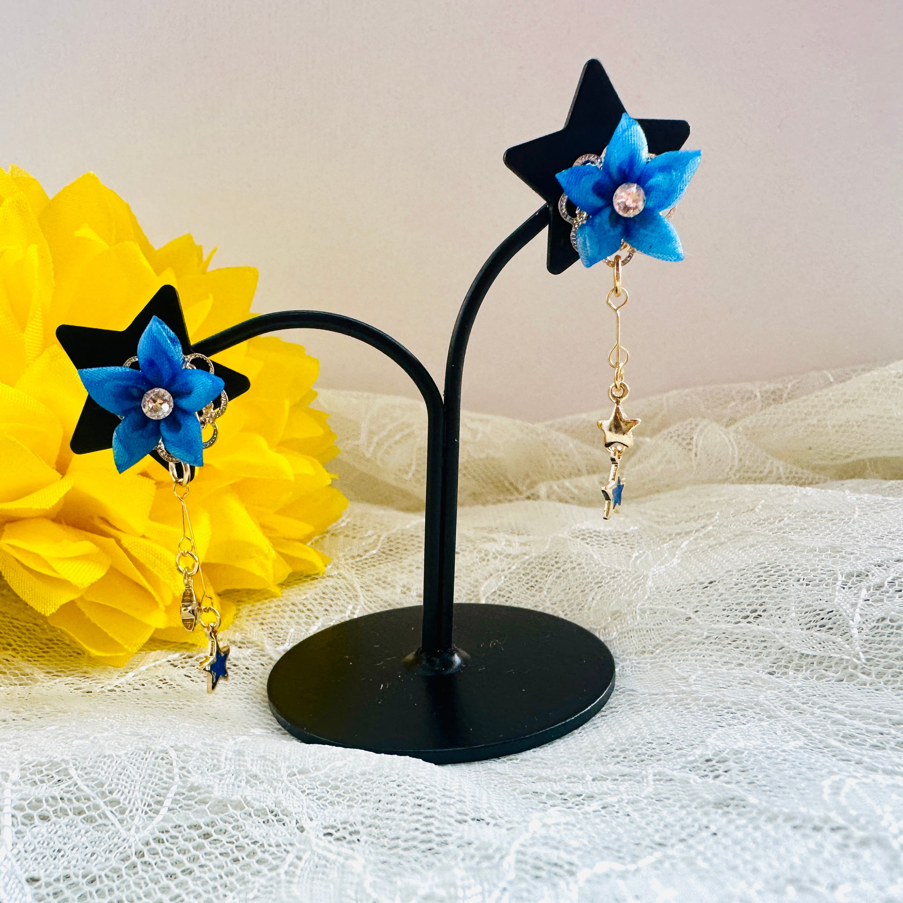 星をモチーフにしたピアス/イヤリングです。小さな星が揺れ動き、かわいらしくも神秘的な印象を与えます。夜空の美しさを感じさせるデザインに仕上げました。