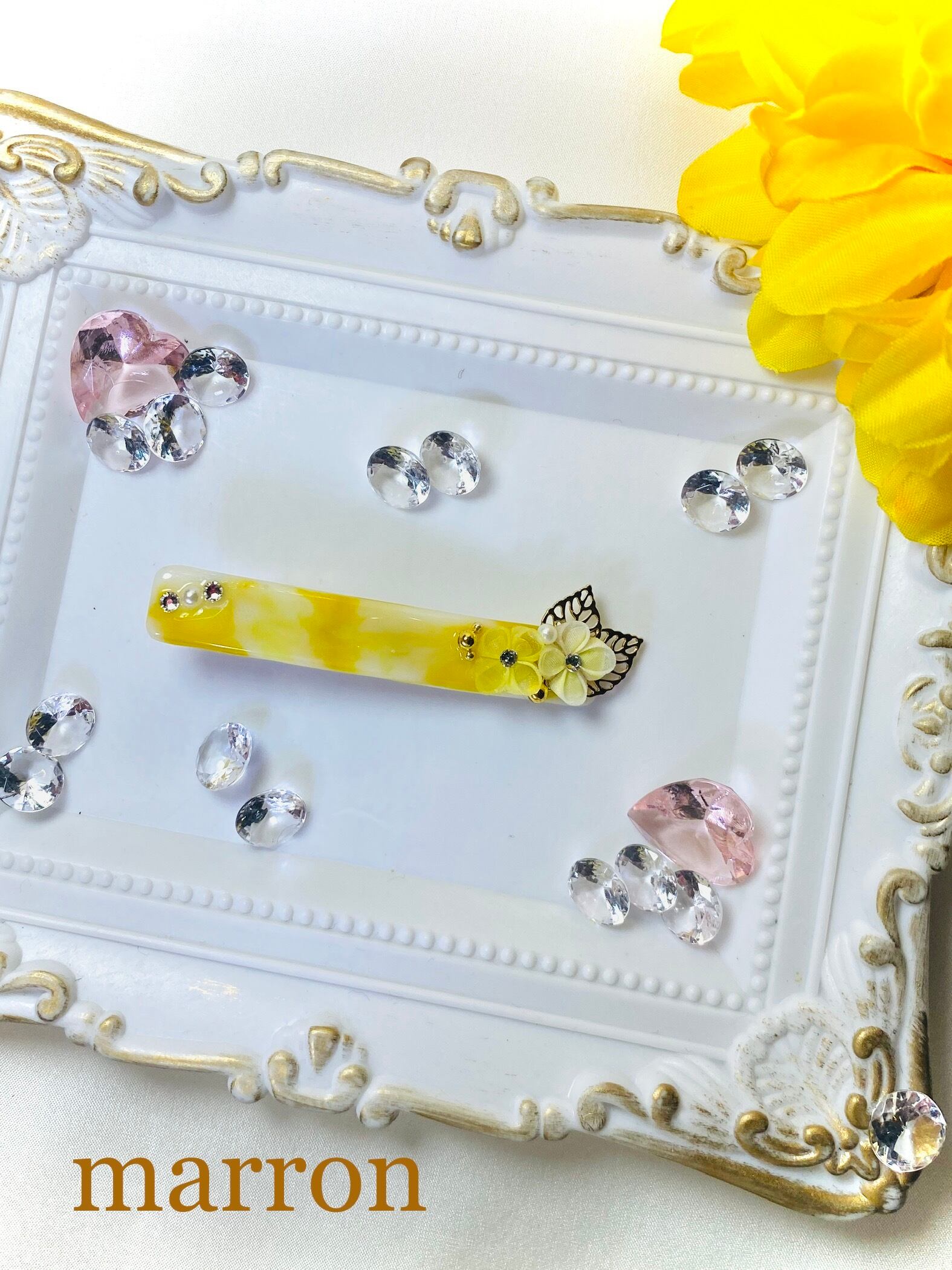 紫陽花とマーブル模様のヘアクリップ イエロー